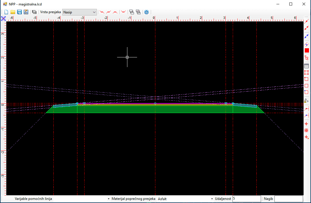 Modeliranje poprečnog presjeka - autocesta sa pomoćnim elementima